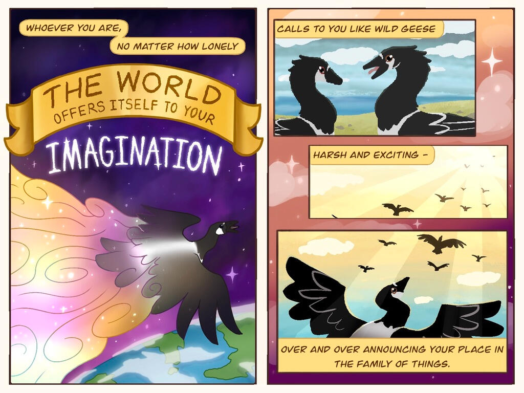 My artwork comes from my desire to share the joy that I feel from music, friends and family, media, and story. Music and art have always been a part of my life, brought upon by those around me. Fantasy as a subject particularly inspires me as I wish to relay imagery that can not otherwise be experienced by the viewer. Animation as a medium, both 2D and 3D digital, offers more creative freedom with storytelling, design, color, effects, and other aspects that I would not be able to achieve with most traditional mediums, allowing me to express imagery through movement and better generate the emotions I wish to share. My stylistic approach leans towards a mix of cartoon and realism, which is able to add to my subject of fantasy while maintaining a realistic connection. A connection between art and viewer is what I hope to achieve the most within my work.